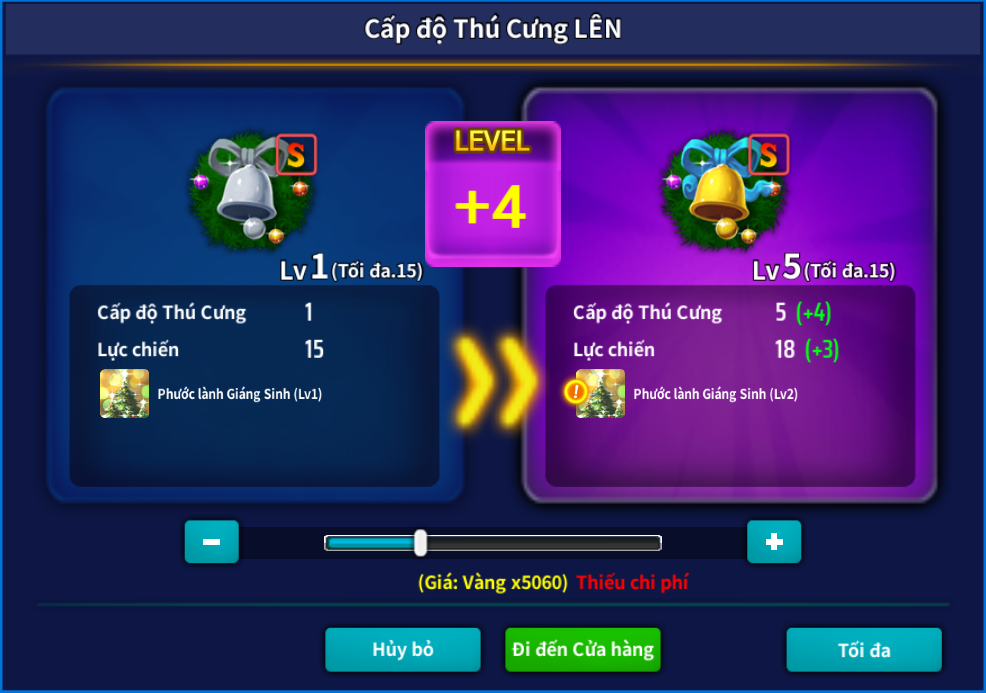 - Với Pet, người chơi có thể sử dụng Vàng để tăng cấp độ, khi đạt các cấp độ nhất định sẽ tăng cấp cho kỹ năng của Pet