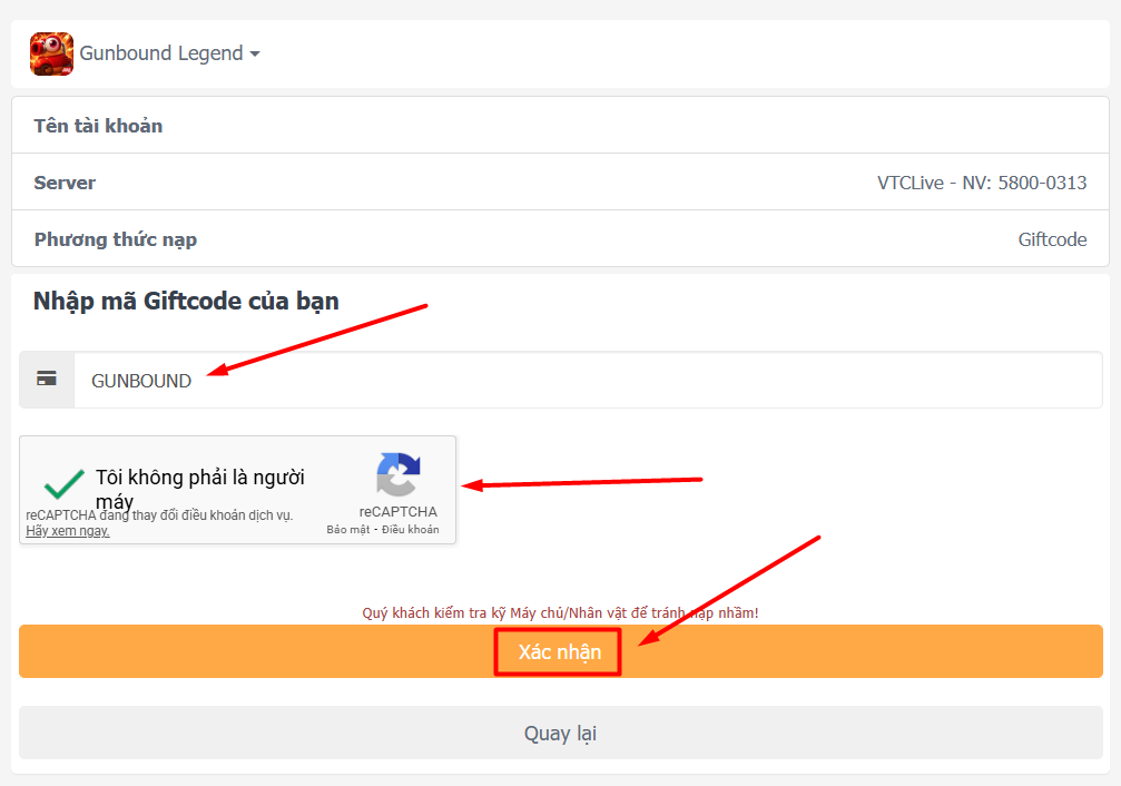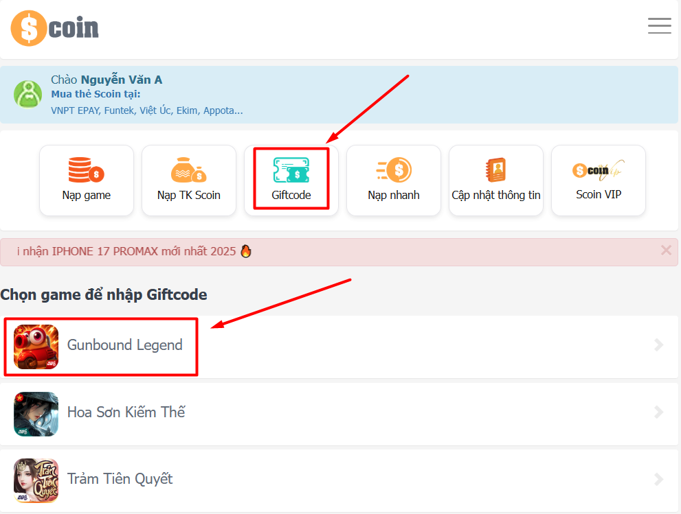 - Bước 2: Bấm vào mục Giftcode - chọn game Gunbound Legend