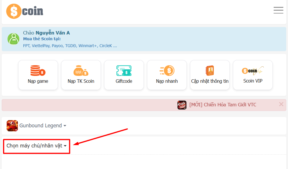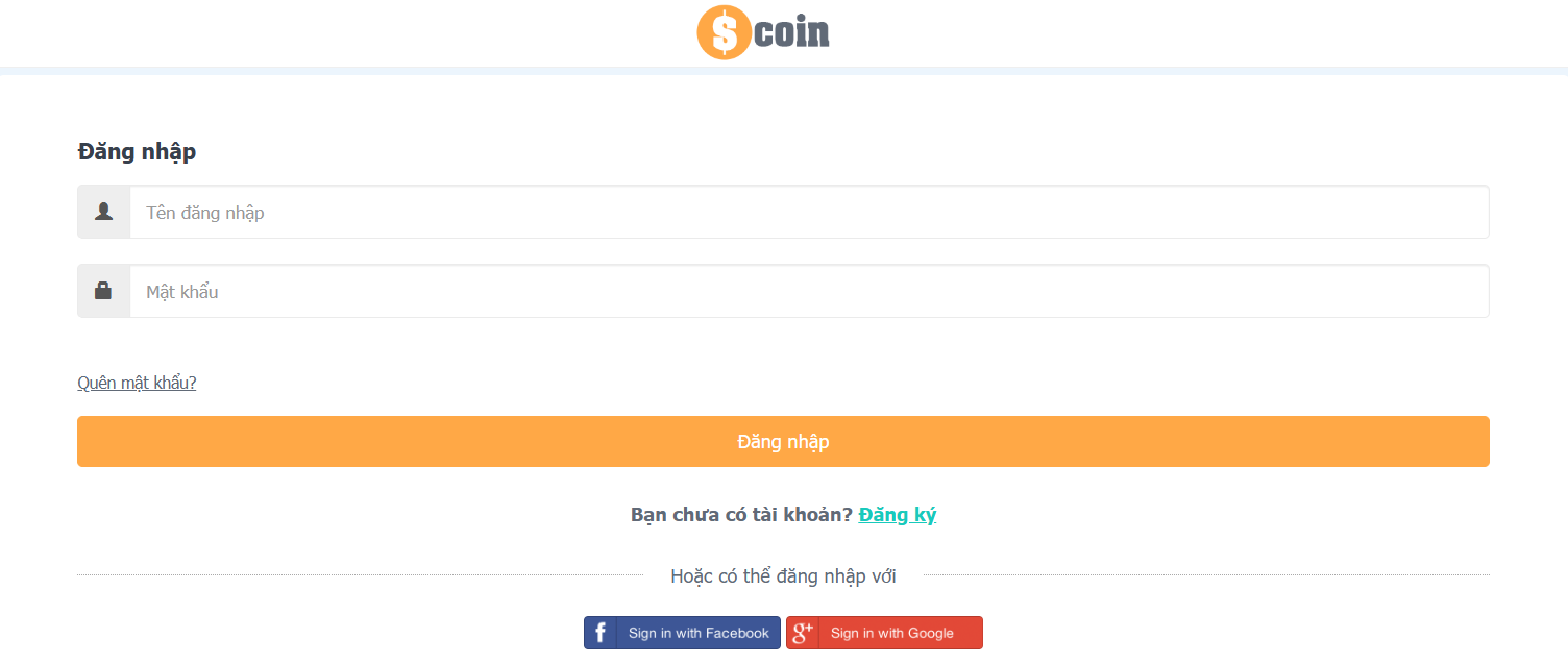 - Bước 1: Người chơi vào trang scoin.vn và đăng nhập tài khoản của mình